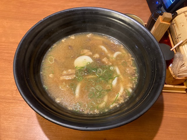 うどんはつるつるでコシはちょっと強めでしょうか。牛すじ煮込みがまるまる入っている感じです。