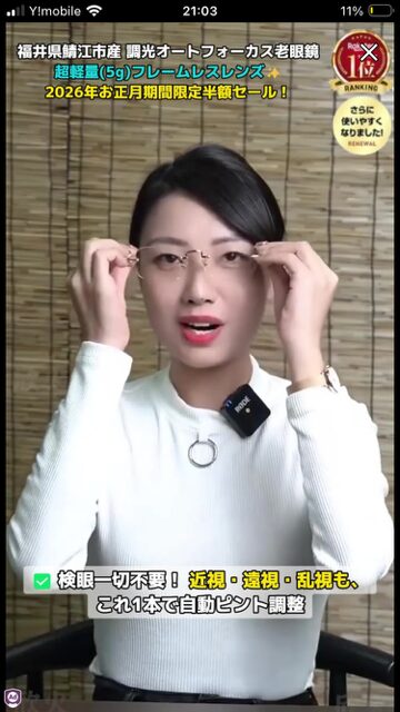 鯖江産の眼鏡だそうで、もちろんどこにもその保証もありません(笑)しかも155秒のCMって糞過ぎ