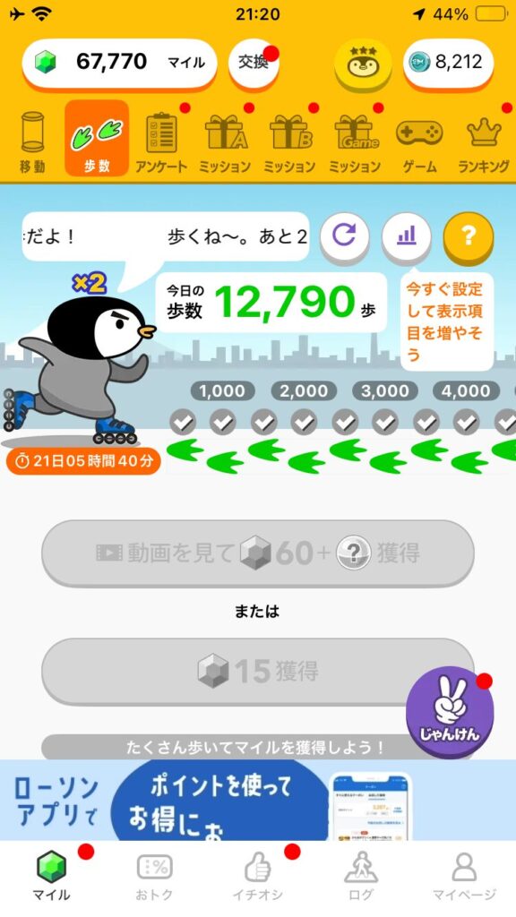 ※これとは別に74000をポイント投資中(総獲得pts:74663)