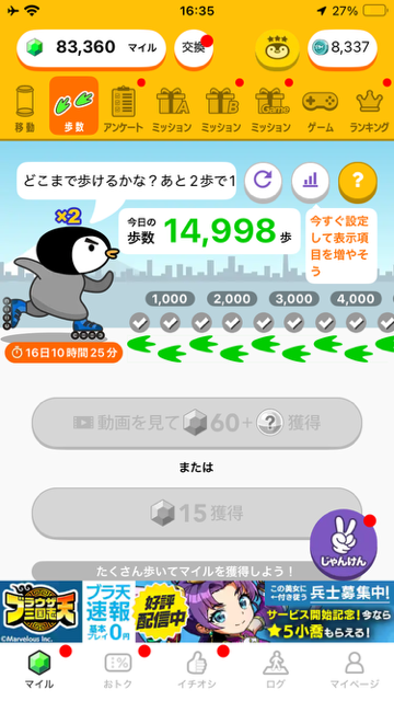 ※これとは別に74000をポイント投資中(総獲得pts:74663)