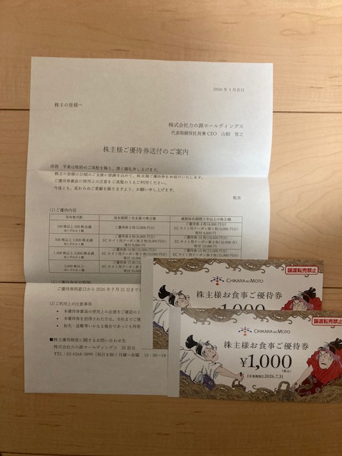 昨日力の源ホールディングスさんから株主優待が届いていました。