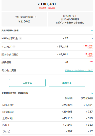 ほぼウォーキング・移動で稼いだdポイントではじめたdポイント投資ですが、2021年に開始して以来大台の10万円を超えました。