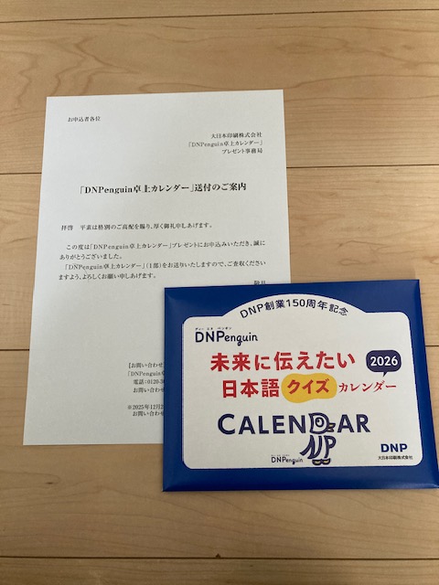 大日本印刷さんから隠れ優待の卓上カレンダーが届いていました。