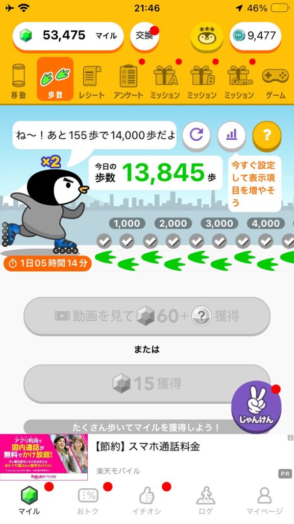 ・楽天ポイント…2448ポイント←前回 2424