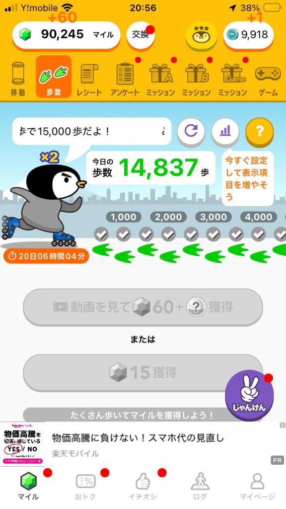 ※これとは別に79500をポイント投資中(総獲得pts:80353)