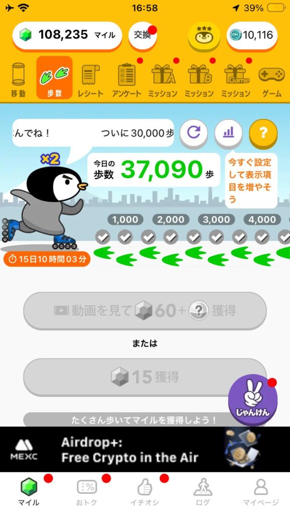 ・楽天ポイント…2607ポイント←前回 2602