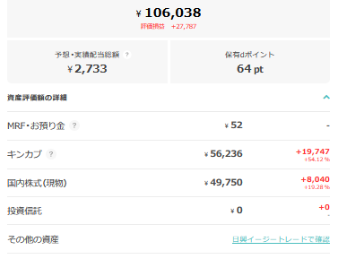 待機資金は116円(MRF・お預かり金:52、保有dポイント:64)ですね。